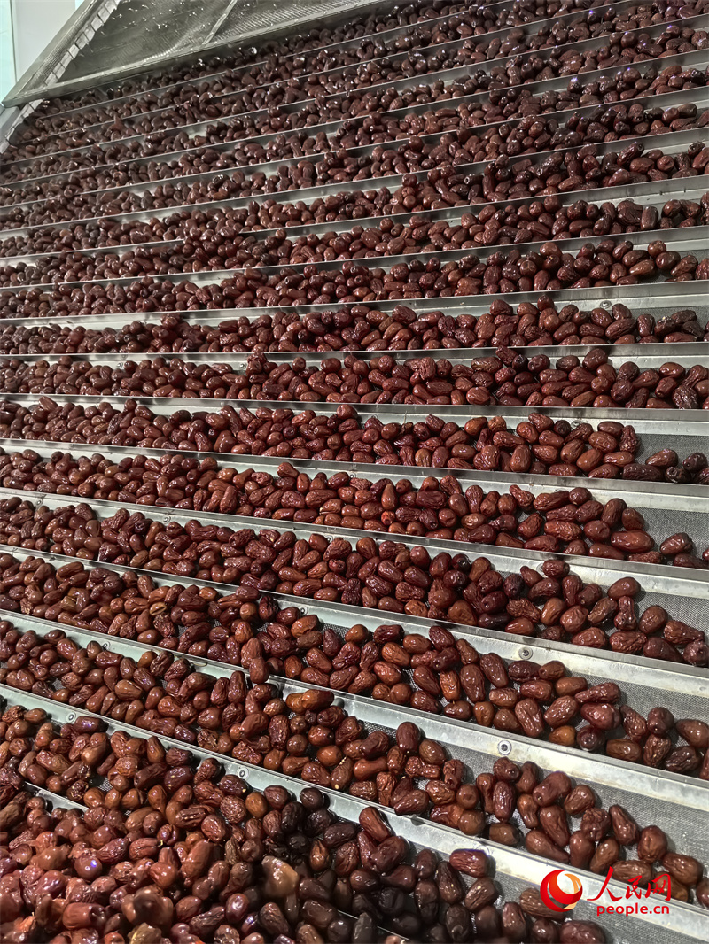 “2024年,我们自己的红枣产量有600多吨,目前已全部销售完毕。”李鹏说,“加工厂还帮周边的村民加工了600多吨红枣,我也帮着他们对接客户,希望大家的红枣都卖个好价钱。”