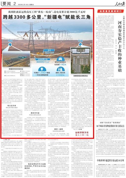 截至去年底,准东—皖南工程年度输送电量达683.73亿千瓦时,连续4年位居全国特高压工程之首,占安徽省2024年全社会用电量的19%,约等于该省69天的用电总量。