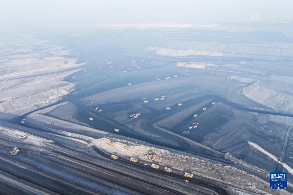 这是在新疆准东经济技术开发区拍摄的新疆宜化矿业有限公司五彩湾矿区一号露天煤矿(1月20日摄,无人机照片)。