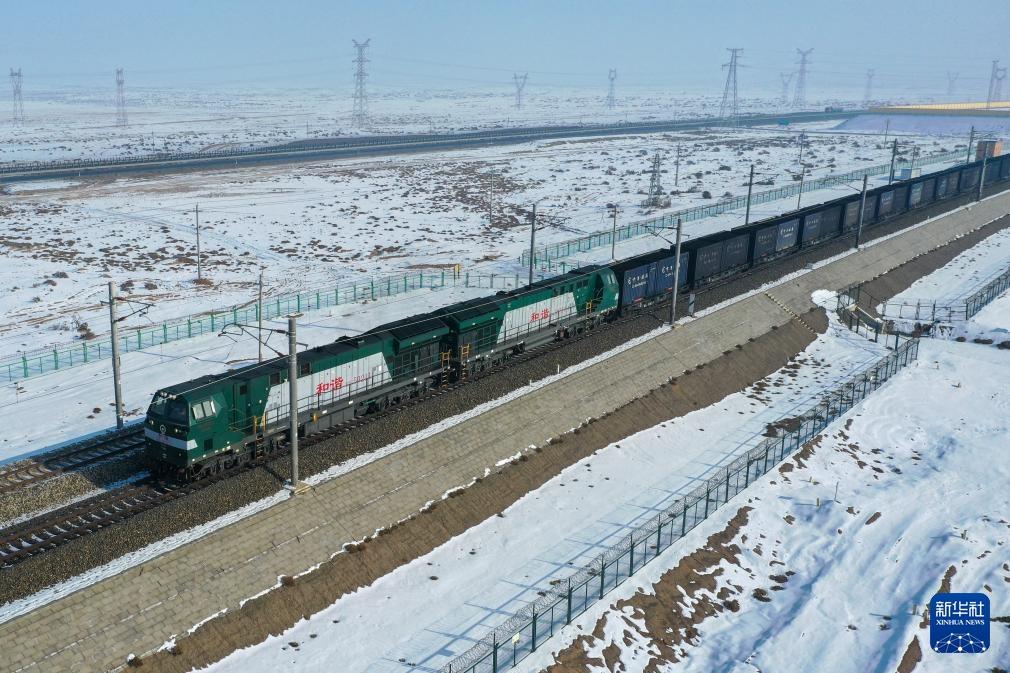 一列满载煤炭的出疆“百辆万吨”货运列车行驶在乌将铁路上(1月21日摄)。为释放通道能力,新疆铁路部门在普速铁路循环开行总重万吨以上货运列车以及卸空后百辆以上货运列车。