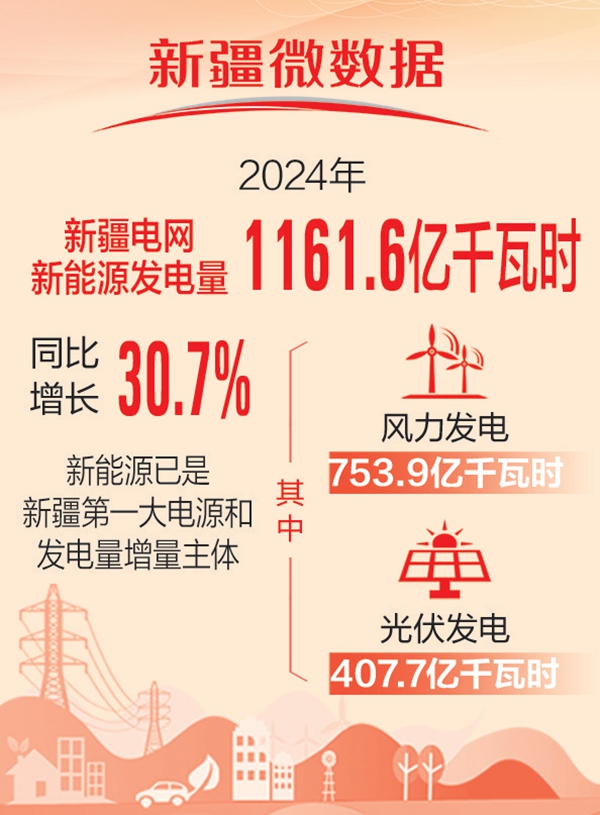 本报乌鲁木齐1月14日讯 石榴云/新疆日报记者陈蔷薇从国网新疆电力有限公司获悉:2024年,新疆电网新能源发电量1161.6亿千瓦时,同比增长30.7%,新能源发电量及占比持续增长。新能源已是新疆第一大电源和发电量增量主体。