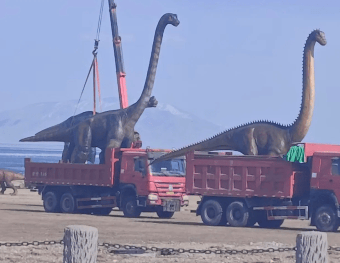 4月24日,记者联系上赛里木湖景区,工作人员表示,目前,恐龙雕塑已迁移至景区外人工湖。