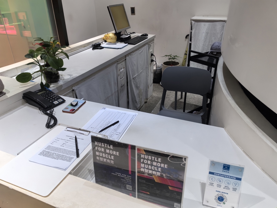 图为新天地安达仕酒店健身中心前台。记者使用买来的住客信息登记后,同样顺利进入。