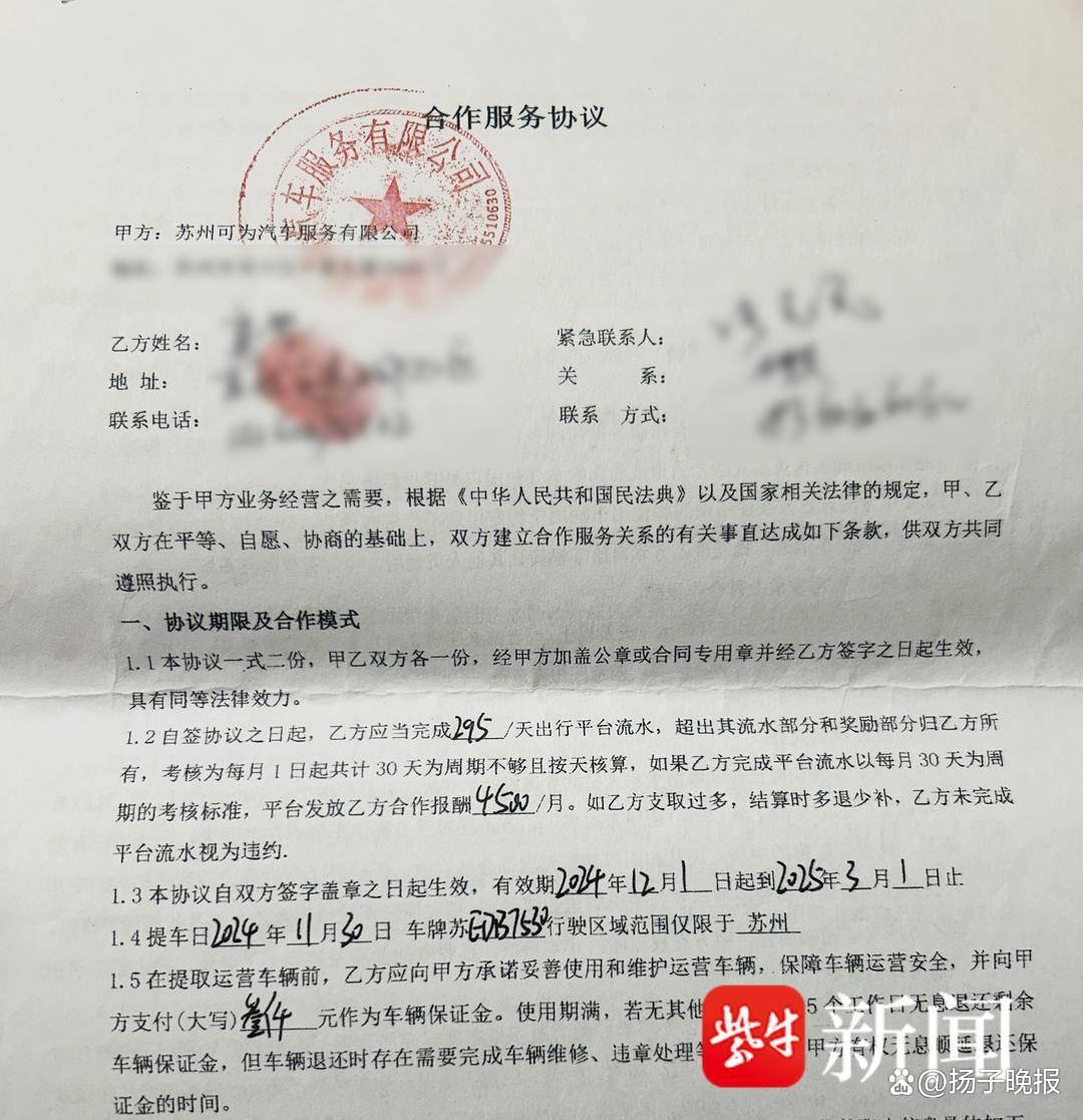 近日,苏州市民高先生向扬子晚报“紫牛问政”平台反映,他应聘网约车司机,被告知只需交纳500元押金就能“开工”,可月入过万。但上路后却发现想要完成“考核”太难,更没想到一个月后,不但车辆被强制收回,还被对方以“考核不达标”为由解约,网约车流水和缴纳的押金等也被扣。“辛苦一个月,怎么感觉我被套路了?”