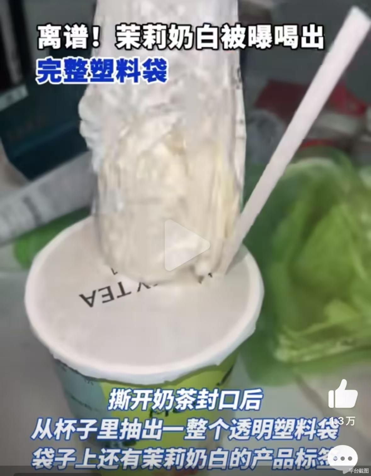 3月23日,“茉莉奶白被曝喝出完整塑料袋”相关话题引发热议。根据点时新闻,有据网友发帖爆料称,在茶饮品牌茉莉奶白家点的茉莉奶白奶茶,吸管插进去发现不对劲,有东西挡着,据博主发布视频显示,撕开奶茶封口后,从杯子里抽出一整个透明塑料袋,袋子上还有茉莉奶白的产品标签。22日晚,据博主评论区最新回应,已收到1000元赔偿,但后续也需要门店给予交代,奶茶里为何会有这么大的塑料袋。