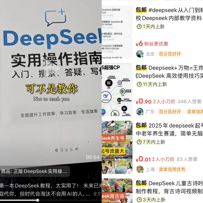 无论是在短视频平台还是二手交易电商上,有关DeepSeek的培训课程都成为了流量密码,话术也极其相似。