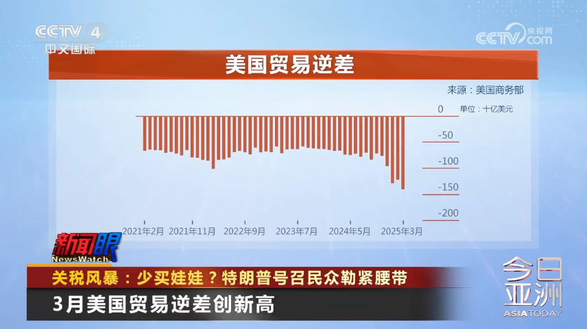 据@央视网5月7日报道,在关税阴影下,由于进口商提前囤货,美国3月份进口额和贸易赤字双双创下历史新高。