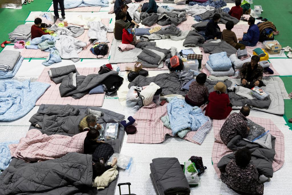 3月27日晚,受灾群众在韩国庆尚北道英阳郡一处避难所过夜。新华社发(全休相摄)