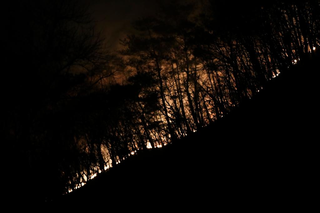 这是3月27日晚拍摄的韩国庆尚北道青松郡山火现场。新华社记者姚琪琳摄