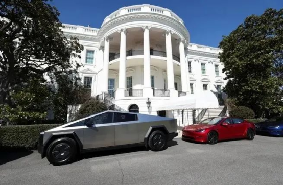 ▲当地时间3月11日,包括Model S、Cybertruck和Model Y等多种特斯拉电动汽车停在白宫外。图源:英媒
