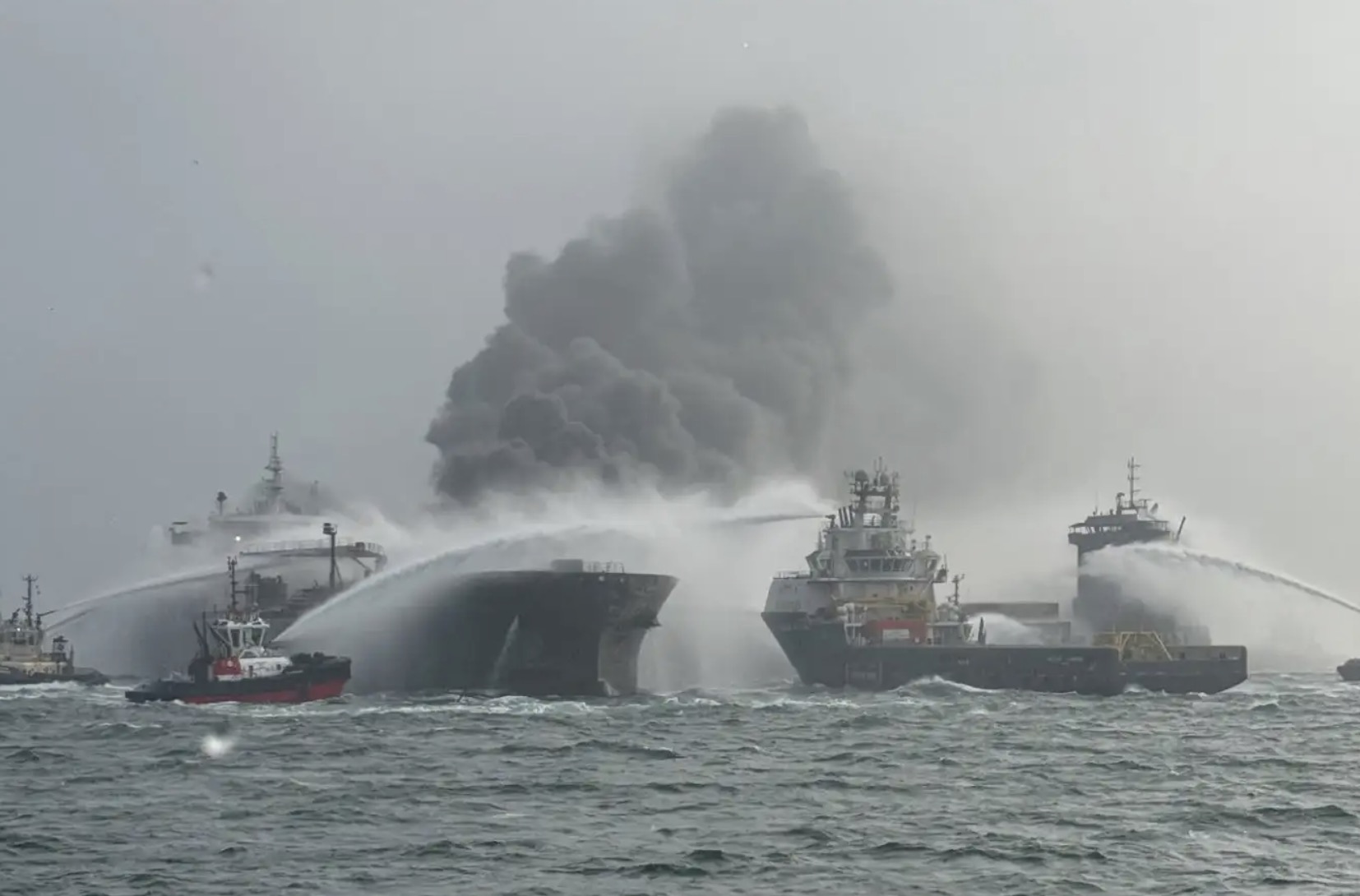 “索龙”号货船的所有者Ernst Russ在声明中表示,两艘船都遭受了“重大损失”,碰撞后船上迅速燃起熊熊大火,冒出滚滚浓烟。据报道,“索龙”号上仍有一名船员失踪。