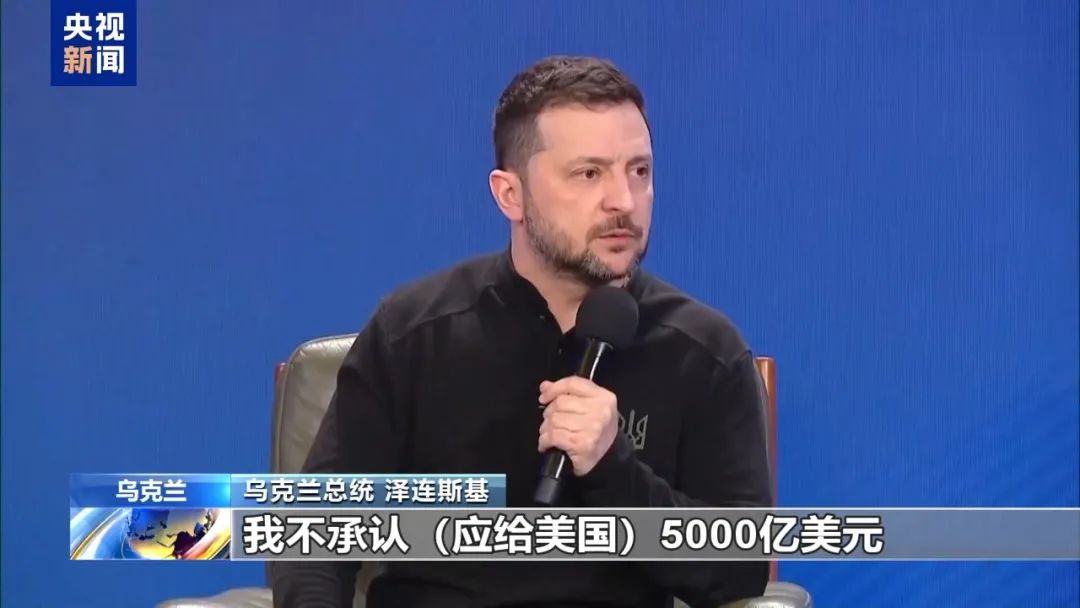 乌克兰总统 泽连斯基:我不承认(应给美国)5000亿美元,不管有人喜欢与否,我们不能把赠款视为债务,我不会签署一份需要十代乌克兰人来偿还的协议。