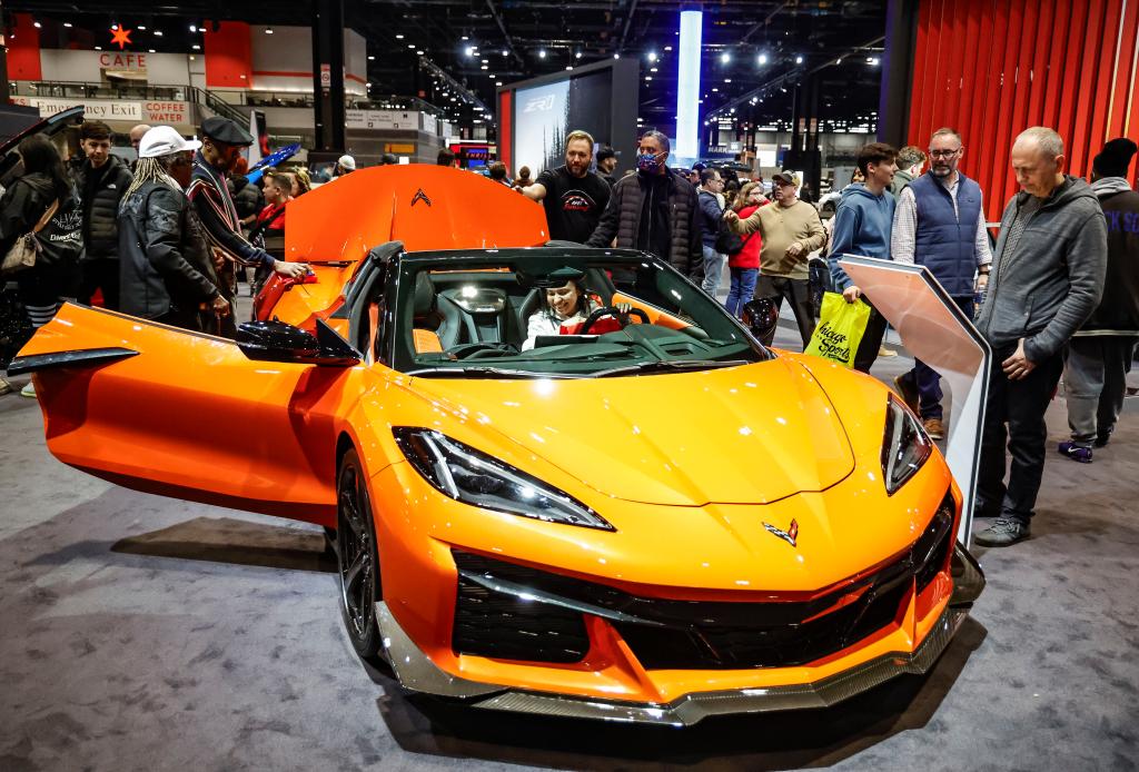 2月14日,在美国芝加哥麦考密克展览中心,人们体验雪佛兰科尔维特Z06敞篷车。新华社发(乔尔·莱纳摄)