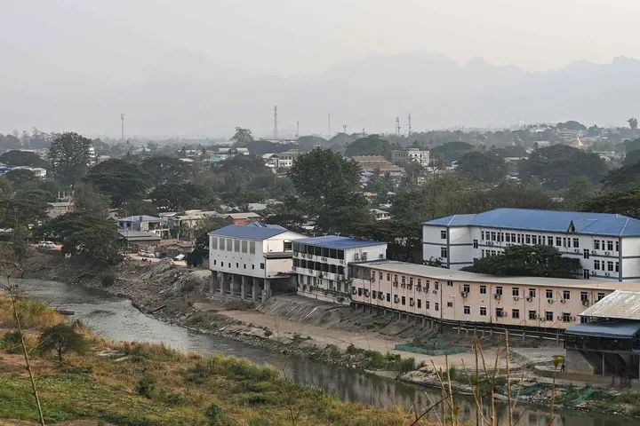 ▲资料图片:2024年4月11日,从泰国一侧拍摄的缅甸妙瓦底。(法新社)
