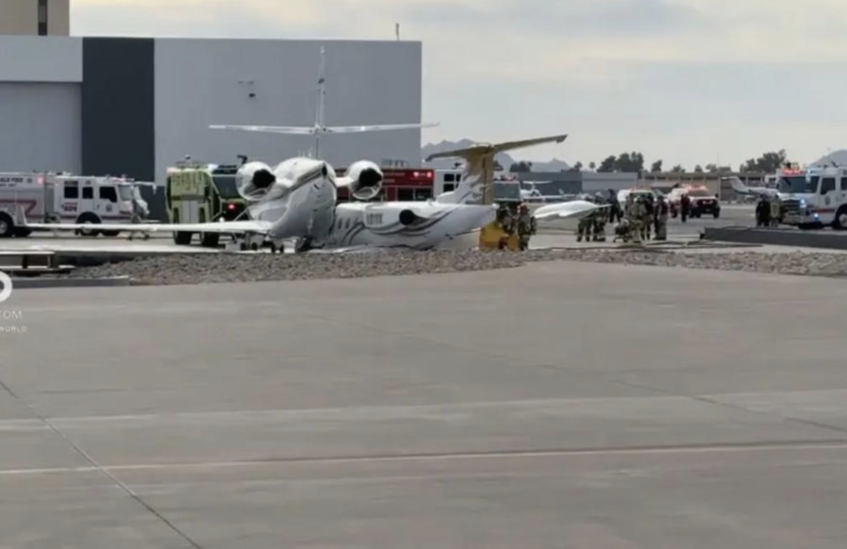 当地时间10日14时45分左右,美国亚利桑那州斯科茨代尔机场两架飞机在地面跑道发生碰撞。目前紧急救援人员已赶赴现场,该机场的跑道已关闭。