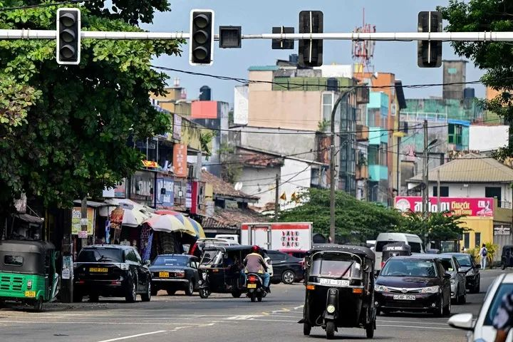 ▲2月9日,由于斯里兰卡全国范围的停电,通勤者开车经过街头瘫痪的红绿灯。(法新社)