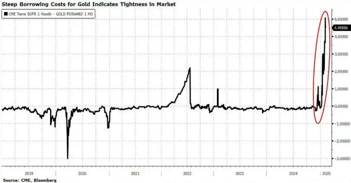 反映黄金短期借贷成本的黄金一个月租赁利率,在1月份跃升至了几十年来的最高位。而在英国央行金库这边,提取黄金的交易商队伍排成了长龙,导致存放在那里的黄金与市场化价格相比,出现了异常大的折扣。