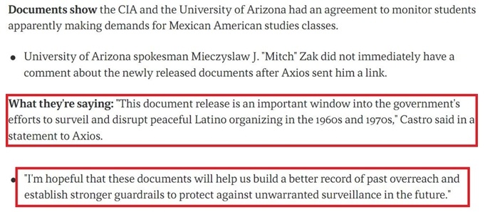 此外,中情局还试图密切监控亚利桑那州、加利福尼亚州和科罗拉多州的墨西哥裔美国学生活动人士,甚至让卧底特工渗透到学生团体中。