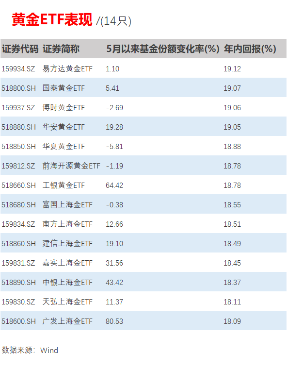 相关产品的亮眼表现也进一步催化了黄金ETF份额的成长和资金的流入。