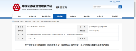 2月20日,四川证监局发布公告,对天健会计师事务所(特殊普通合伙)及其两名注册会计师祝芹敏、何人玉在执行国城矿业股份有限公司(以下简称 “国城矿业”)2023 年财务报表审计项目时存在的问题进行了通报,并采取出具警示函的监督管理措施。