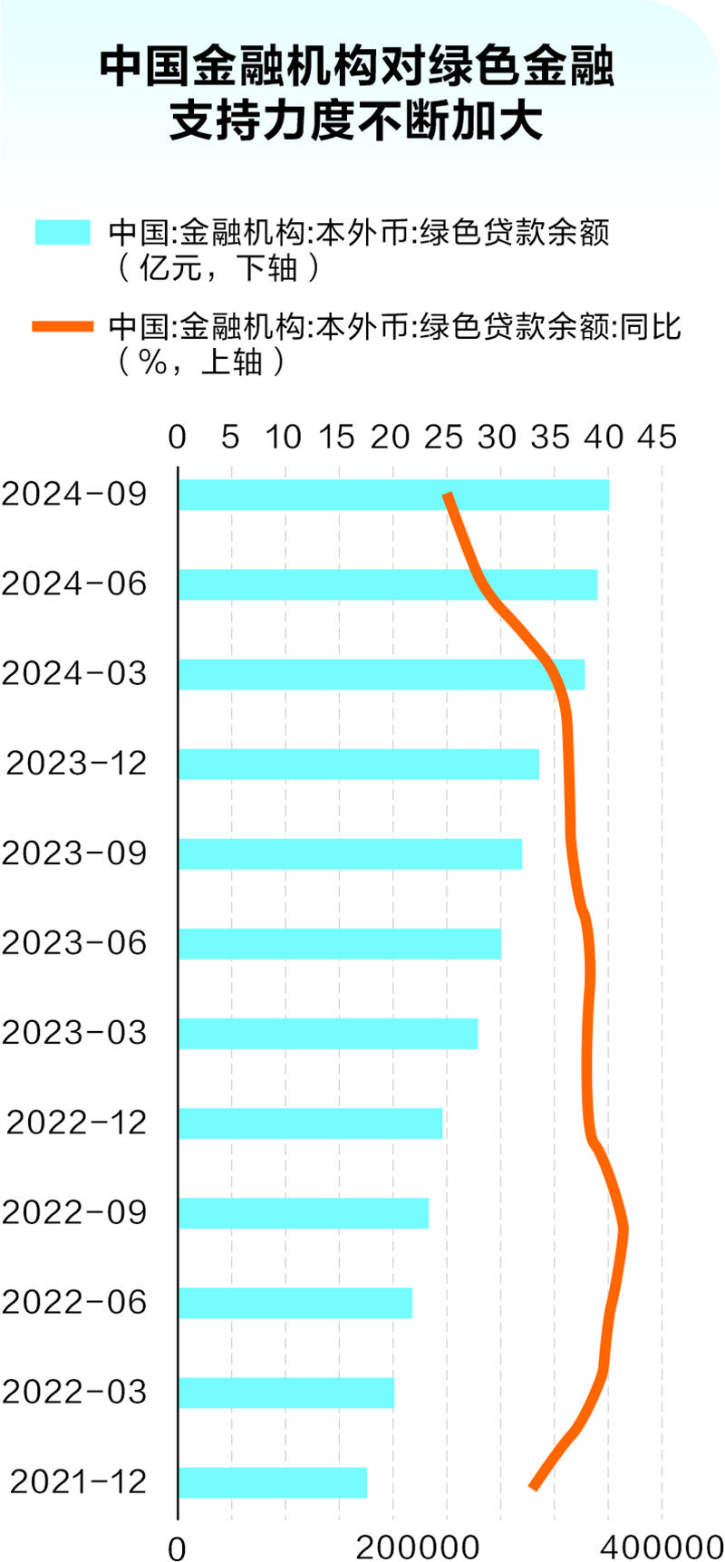 截至2024年三季度末,我国绿色贷款存量规模超35万亿元,绿色债券累计发行3.9万亿元。