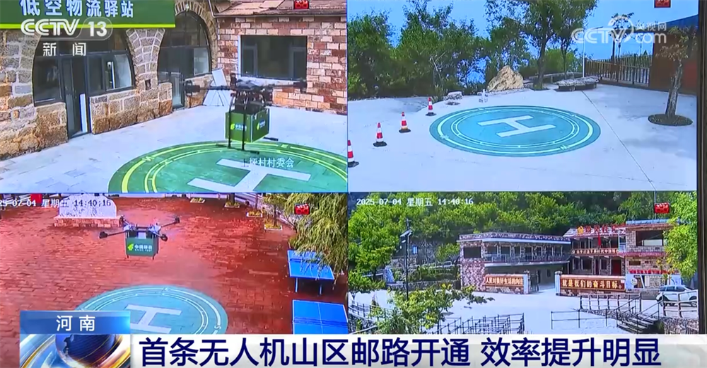 在河南安阳林州市石板岩镇,一架架无人机有序起降,执行着邮件和货物的运输任务。这些无人机从石板岩镇出发,飞往周边海拔较高、交通不便的村庄。