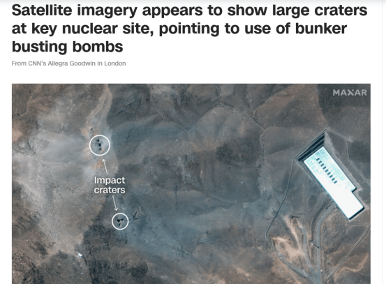 据美国有线电视新闻网(CNN)6月22日报道,最新卫星照片显示,美国对伊朗福尔道核设施的空袭留下了至少6个大弹坑,表明美军使用了“掩体炸弹”。