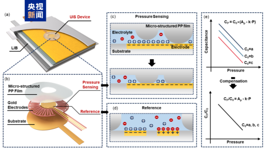 锂离子电池因其高能量密度和长循环寿命而成为电动汽车和储能系统的核心。然而,锂枝晶生长、固体电解质界面膜生长等问题威胁着电池的使用安全与服役寿命。针对这一挑战,研究团队开发了一种基于一体式离电传感技术的新型原位监测技术,利用锂离子电池自身的电解液和材料构建传感界面,无须额外封装即可实现高精度压力监测。这种结构不仅与电池材料高度兼容,还解决传统柔性压力传感器在腐蚀性环境中的稳定性难题。