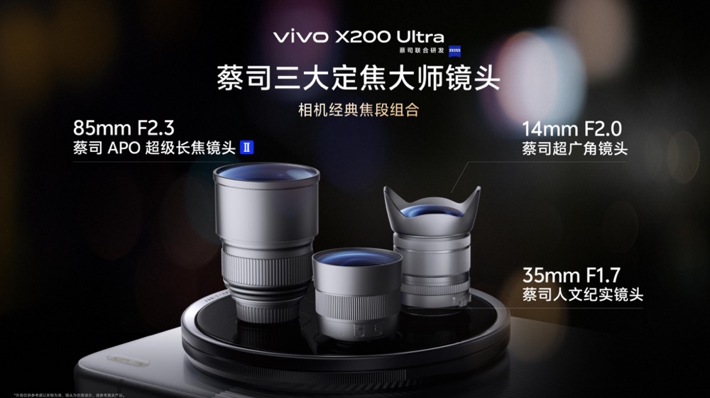 vivo在X200 Ultra上推出了蔡司三大定焦大师镜头——14mm蔡司超广角镜头、35mm蔡司人文纪实镜头和85mm蔡司APO超级长焦镜头II。通过三颗同代大底传感器,X200 Ultra避免了主摄“一枝独秀”副摄“不堪大用”的体验割裂。第一次让手机影像的三颗摄像头都能满足创作者在风光、人文、人像、视频上的专业创作需求,实现了一个设备中多重用途。