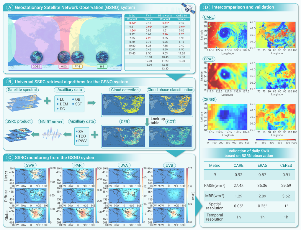 多星组网地表太阳辐射观测系统及成果图。(中国科学院空天信息创新研究院供图)