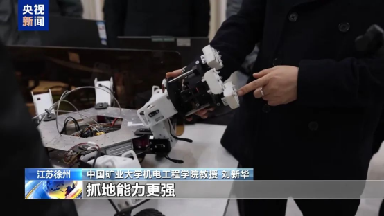 中国矿业大学机电工程学院教授 刘新华:我们实现了这种微重力的等效实验,这个机器人在模拟月壤的环境下,实现行走、锚固,甚至采样。