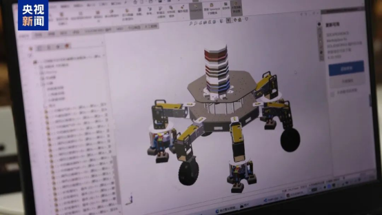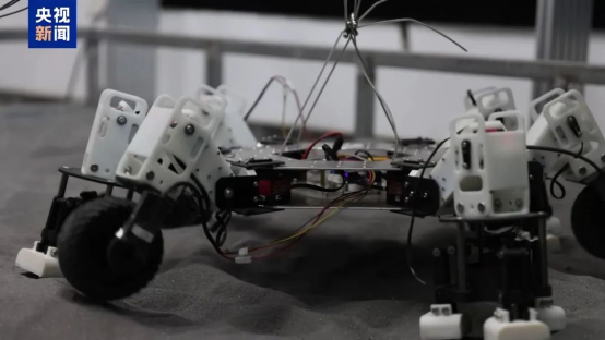 团队成员介绍,经过在沙盘上不断训练,目前,通过六足差动系统悬架、离合器等协同工作,太空采矿机器人已经可以根据工作环境调整自身结构形状,适应地外星体的复杂地表环境。