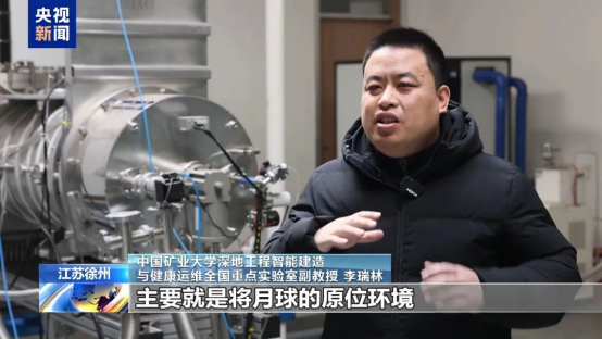 中国矿业大学深地工程智能建造与健康运维全国重点实验室副教授 李瑞林:这个设备主要是将月球的原位环境模拟出来。六分之一G重力场,超高真空的环境。月球上白天可以达到130℃的高温,晚上可以达到-180℃,甚至在极区可以达到-250℃的低温。