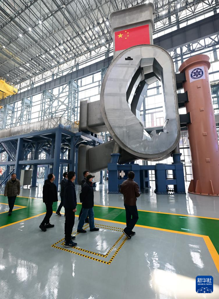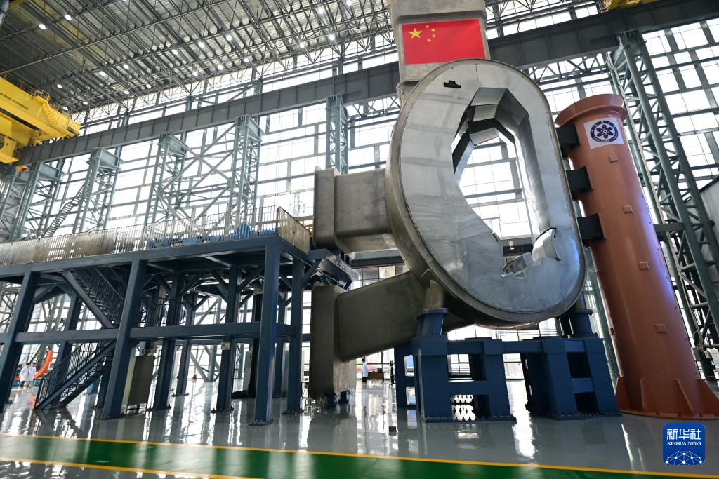 3月9日拍摄的聚变堆主机关键系统综合研究设施八分之一真空室及总体安装系统主体平台。新华社记者 周牧 摄