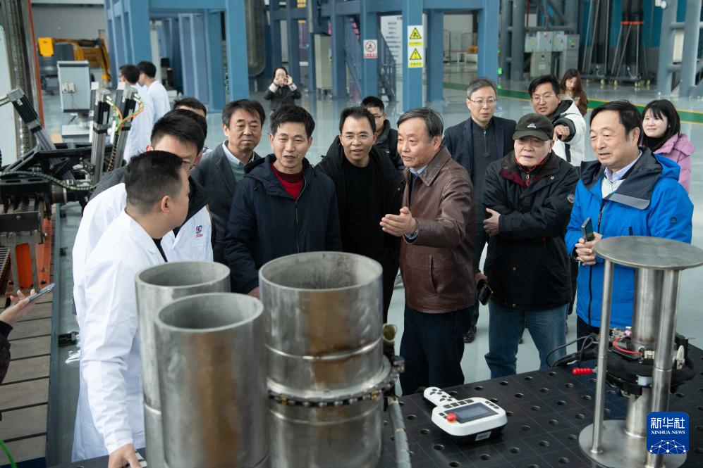 3月9日,专家组对聚变堆主机关键系统综合研究设施八分之一真空室及总体安装系统进行测试和验收。新华社记者 周牧 摄