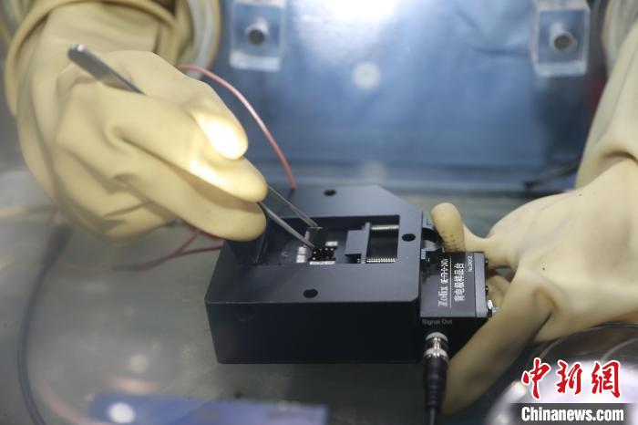 团队成员在测试钙钛矿太阳能电池光电性能。 受访者供图