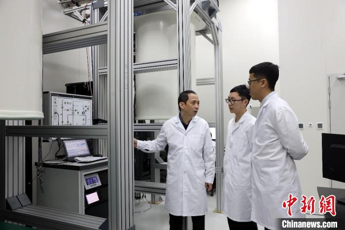 中国科大朱晓波(左)与学生讨论实验结果。代蕊 摄