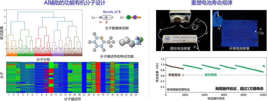 电池中的活性锂离子由正极材料提供,锂离子损耗到一定程度后电池就不得不报废,这是锂离子电池自1990年问世以来一直遵循的基本规律。此次团队通过构建新分子并用于对电池的“康复”,可说是“异想天开”和AI研究范式的结合。