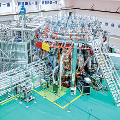 中国环流三号(图三)是目前我国规模最大、参数最高的托卡马克装置,由中核集团核工业西南物理研究院自主设计、建造和运行,装置总高8.39米,直径8米,等离子体离子温度可达1.5亿摄氏度。