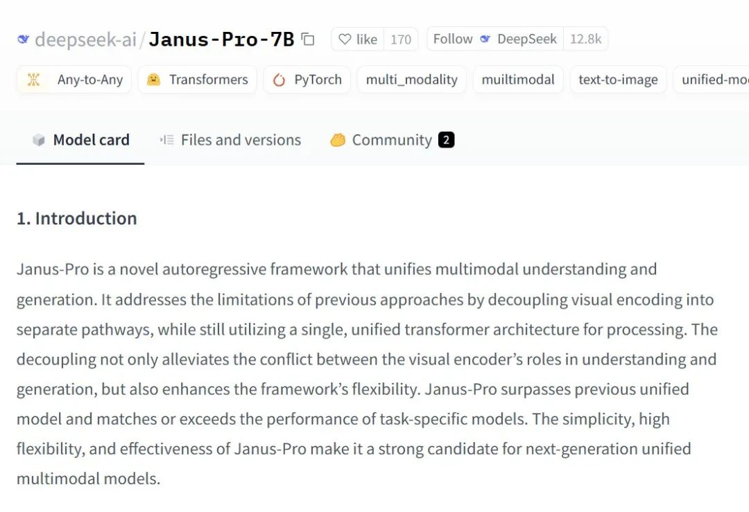 页面显示,Janus-Pro是一种新颖的自回归框架,统一了多模态的理解与生成。它通过将视觉编码分离为独立的路径,解决了以往方法的局限性,同时仍然采用单一的统一Transformer架构进行处理。视觉编码的分离不仅缓解了视觉编码器在理解与生成任务中的角色冲突,还提升了框架的灵活性。Janus-Pro不仅超越了之前的统一模型,还能匹配或超越任务专用模型的性能。其简单性、高灵活性以及高效性使Janus-Pro成为下一代统一多模态模型的有力候选者。