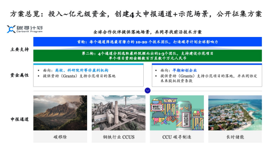 碳寻计划二期从准备制定征集规则起,便综合研判技术路线的价值和可落地性,在兼顾当下必要性和未来发展机会的基础上拟定二期征集的命题,向全世界征寻解决方案。
