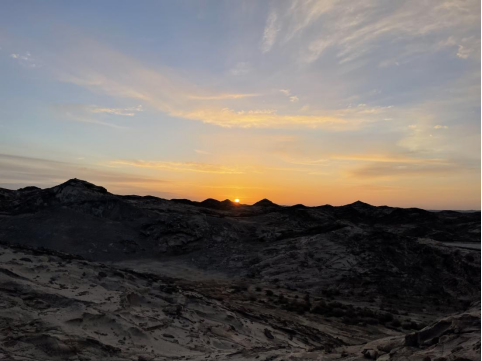 每个清晨,当第一缕阳光穿透薄雾,北山的朝阳缓缓升起,将无垠的沙海染上一层金色。这片荒凉的土地在阳光的照耀下,展现出一种别样的生命力。阳光如同温柔的手掌,抚过每一座沙丘,每一块岩石,让这片沉寂的土地在新的一天里焕发出勃勃生机,亦如北山团队30多年默默坚守所沉淀出的精神。