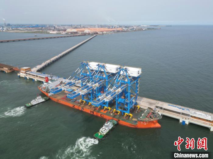 中新网防城港8月29日电(记者 杨陈)广西北部湾国际港务集团29日介绍,近日在北部湾港防城港赤沙作业区1、2号泊位,首批三台额定装卸效率为2500吨/小时的桥式抓斗卸船机顺利滚装上岸并安装固定,标志着北部湾港最大30万吨级自动化干散货码头项目设备正式进入安装调试阶段。