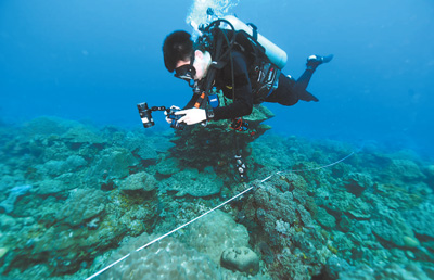 完成分布调查后,就要对珊瑚礁开展精细化生态调查,进一步摸清珊瑚礁的生态状况。比如,珊瑚覆盖率高不高,有没有出现白化死亡,栖息了多少鱼类藻类,周围水质怎么样等。调查结果将为预警监测提供重要参考和依据。