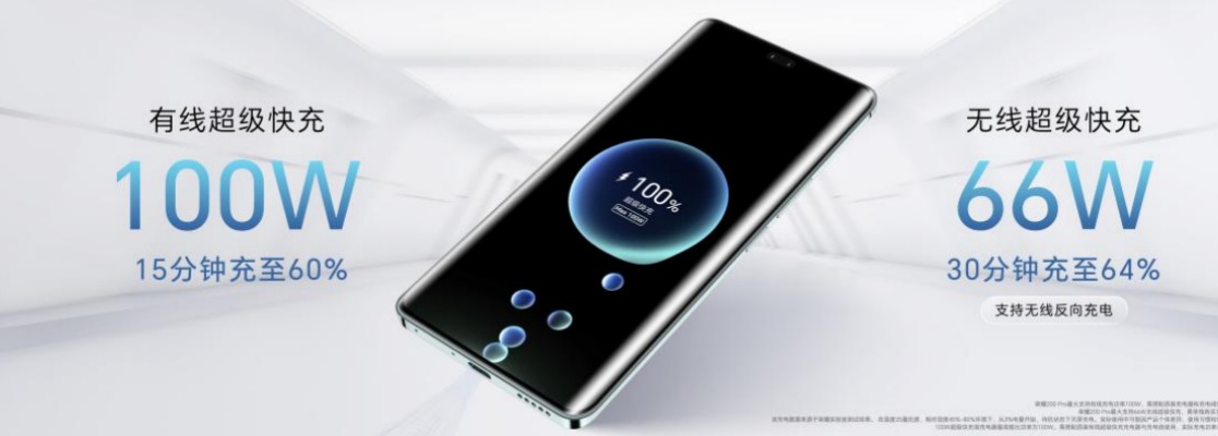 此外,荣耀200系列全面搭载行业前沿的充电技术,全系支持100W有线超级快充,35分钟即可充满,为用户带来急速充电体验。荣耀200 Pro还额外支持66W无线超级快充与无线反向充电功能,不仅有效解决用户的手机电量焦虑,还能在紧急情况下轻松为其他设备提供电力支持。