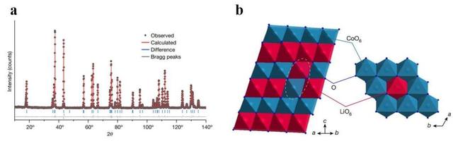 b. LiCoO2的晶体结构及结构中锂和钴元素的分布特征
