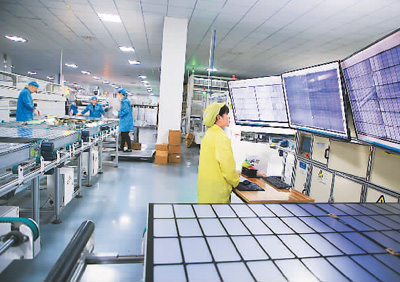 浙江尚博能源科技有限公司工人赶制销往海外的光伏产品订单。