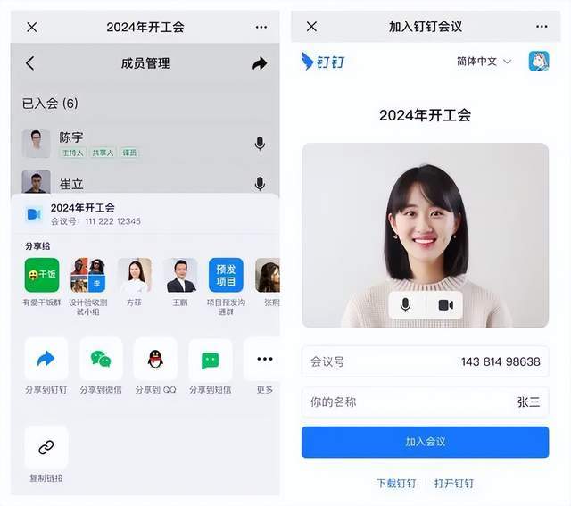 据了解,只需将钉钉会议的入会链接分享给微信好友,对方即可在微信内直接进入同一场会议。首次入会时需通过手机号进行验证,后续再次入会可实现一键快捷登录。而在此之前,用户使用钉钉会议与外部人员进行远程会议时,对方往往需要先下载并注册钉钉APP才能参与会议。