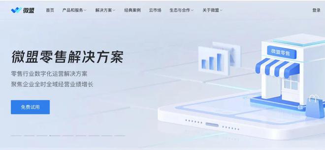 微盟集团成立于2013年,是微信上最大的中小企业第三方服务供应商,主要基于微信生态(如微信小程序及微信公众号)为中小型企业提供SaaS产品,2019年1月登陆港交所主板上市,腾讯是主要股东之一。