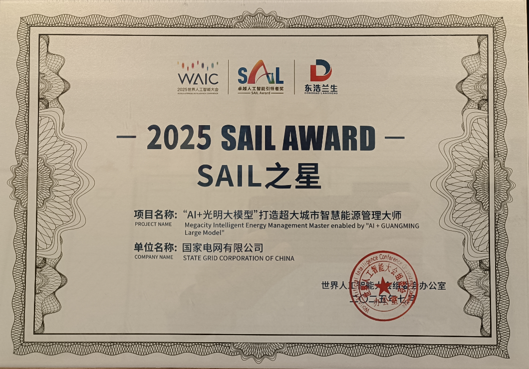 2025世界人工智能大会暨人工智能全球治理高级别会议(简称“WAIC 2025”)于7月26日在上海隆重开幕。大会的最高奖项——卓越人工智能引领者奖(以下简称“SAIL奖”)评选结果在当天揭晓。国家电网有限公司“‘AI+光明大模型’打造超大城市智慧能源管理大师”项目,在223个参赛项目中脱颖而出,荣获“SAIL之星”,是能源领域唯一入选“SAIL之星”的项目。